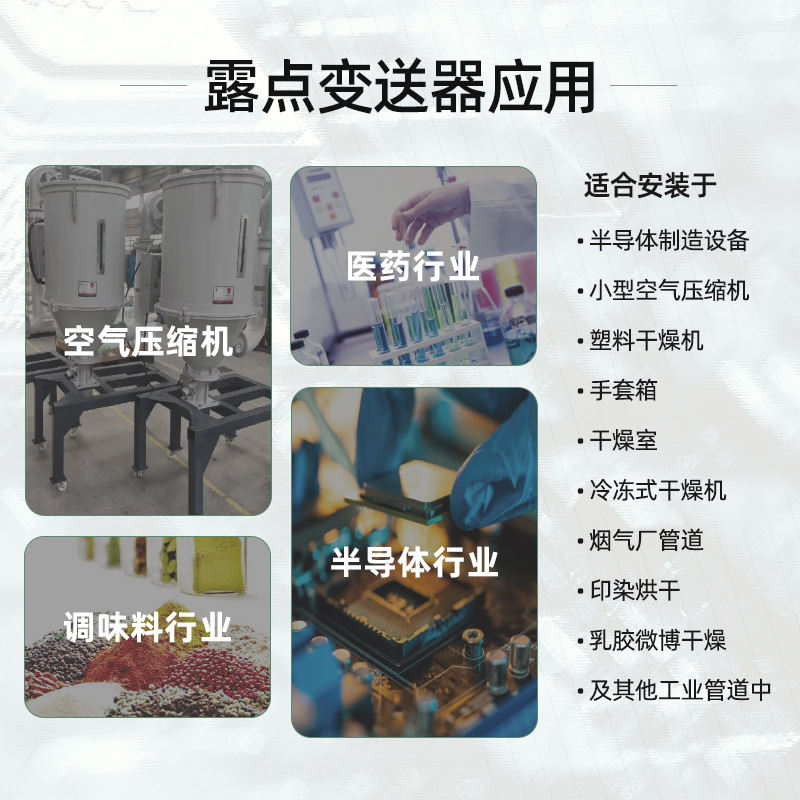 應用領域 | 鋰電池生產、電子元器件制造、半導體制造、電力工程設備;可集成于干燥系統、壓縮空氣系統、恒溫恒濕系統等設備中,用于氣體潮氣檢測。 |